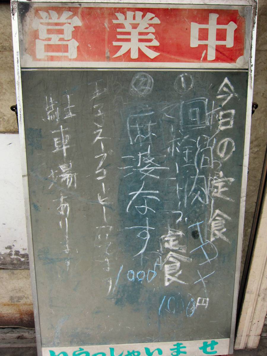 店頭に今日の定食の品が書かれています。 |