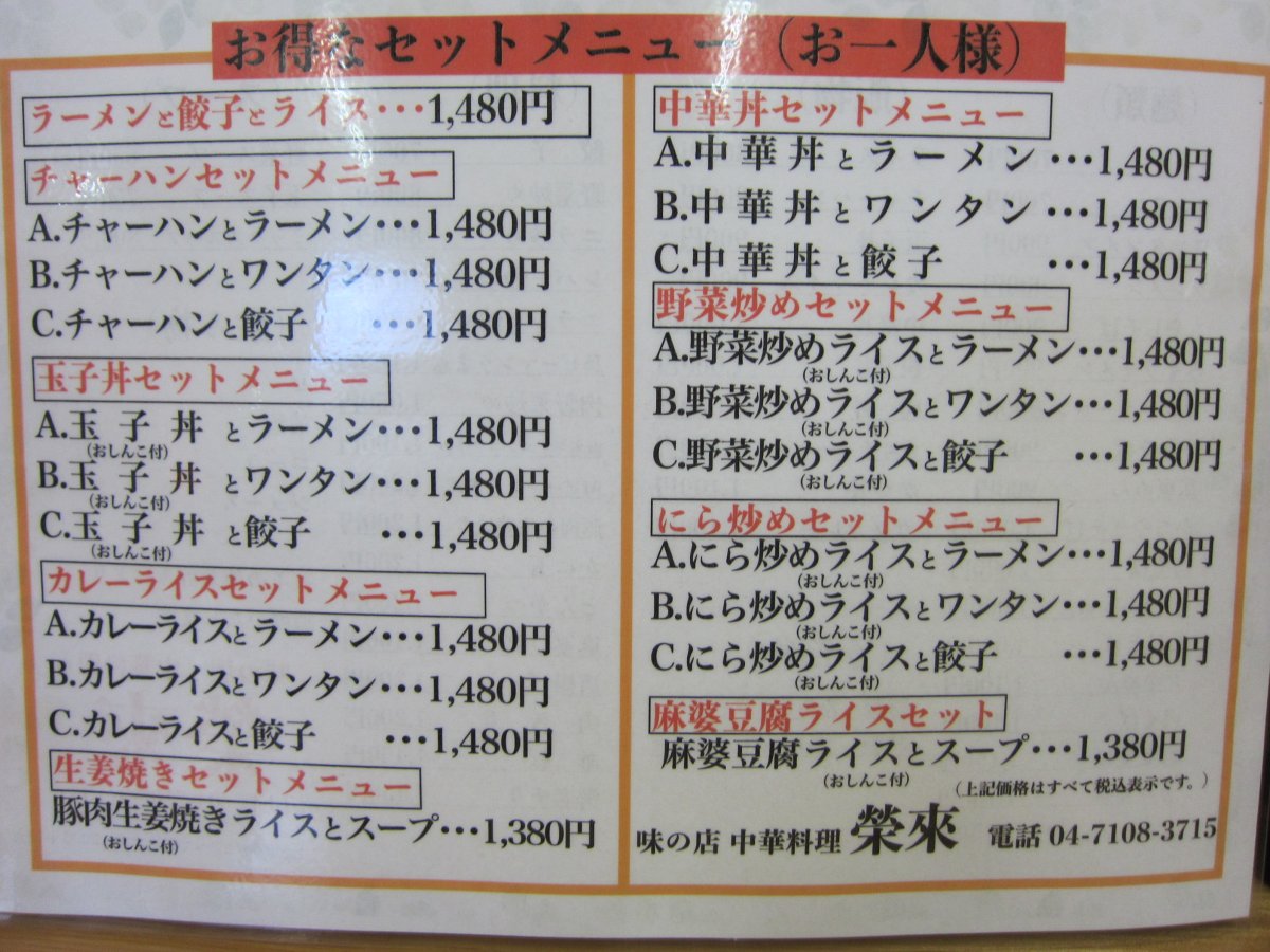 セットメニューが豊富ですね。でも、ややお高めかな? |