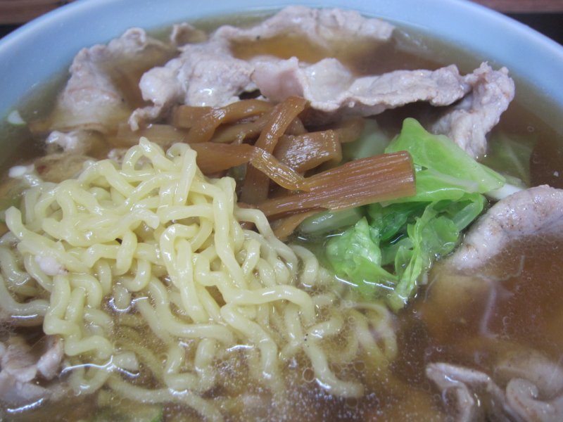 白菜、きゃべつ、にんじん、きくらげたまねぎなどの野菜に豚肉、なるとなどがてんこ盛り。おっと、野菜の下には落とした玉子が隠れてた! 麺はちぢれのある細麺。これは昔ながらのラーメン屋さんに多いタイプだね。具が多くて食べるのはなかなか大変だけど、タンメン的な感じだから、塩の方が合う感じかな。ごちそうさまでした。 (25.9) |