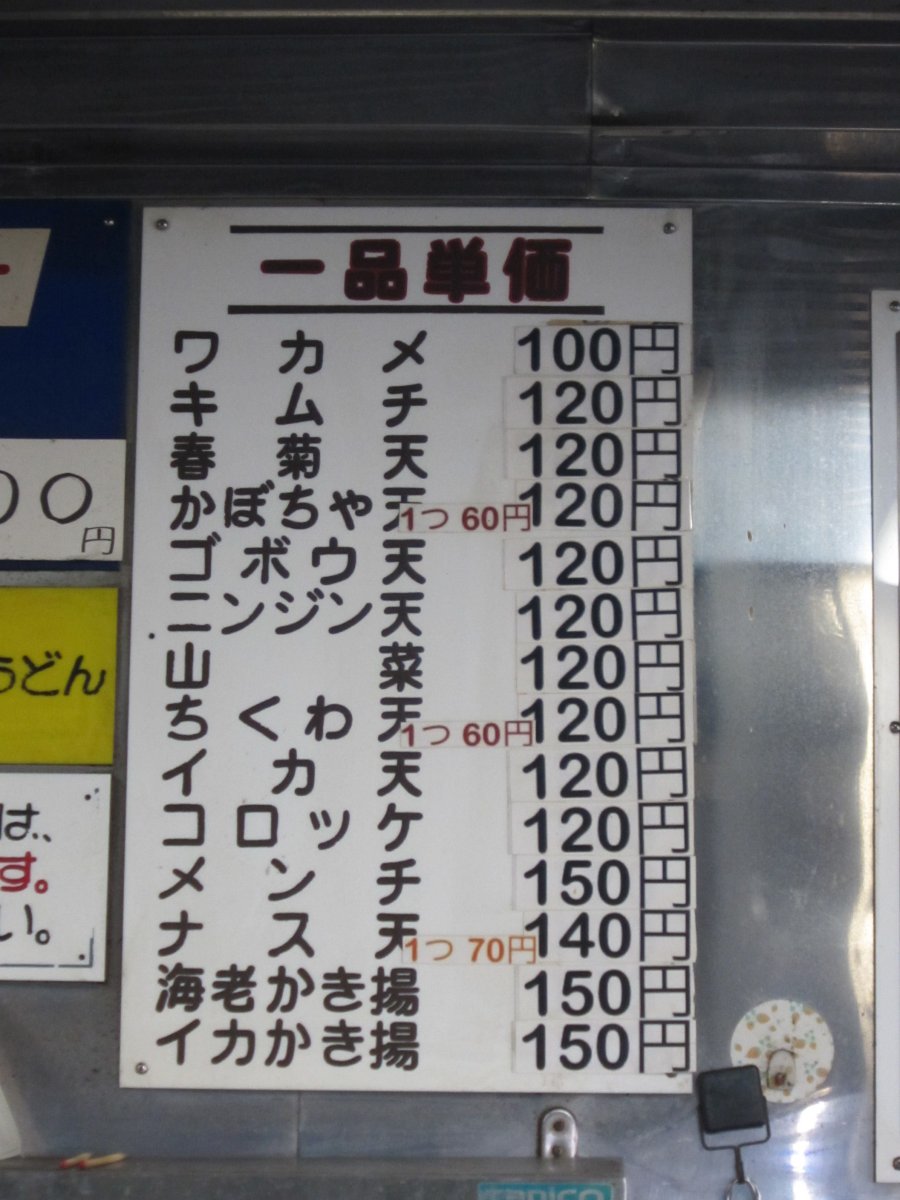 さつまいも天もそれなりの大きさで美味しかったです。 土・日曜限定のこの天ぷら、¥40としてお得すぎる!しかも、定番には無いメニューなんだよね。美味しかったよ。次は牛丼とかのご飯メニューだね。ごちそうさまでした。 (25.9) |