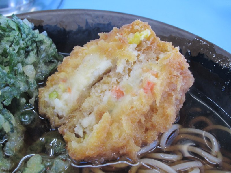 今日はかけそば\500に春菊天\120とコロッケ\120を載せてみました。 |