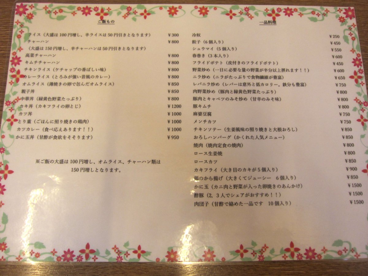 メニューは中華メインで定食やセットものなど、種類豊富です。 |