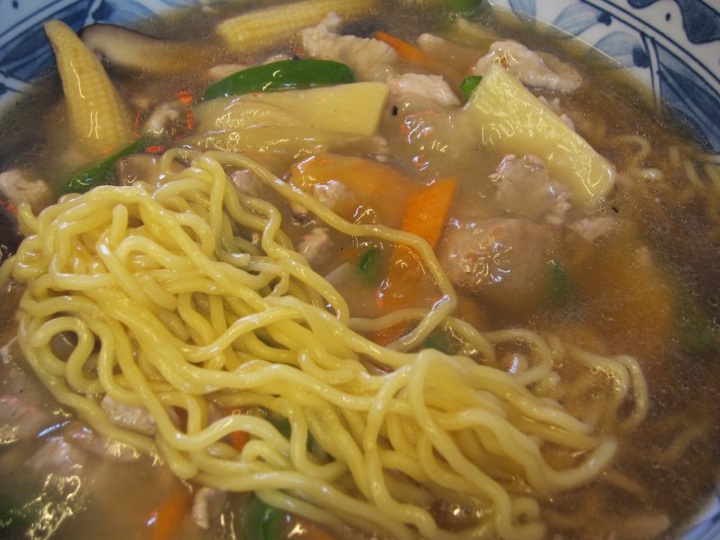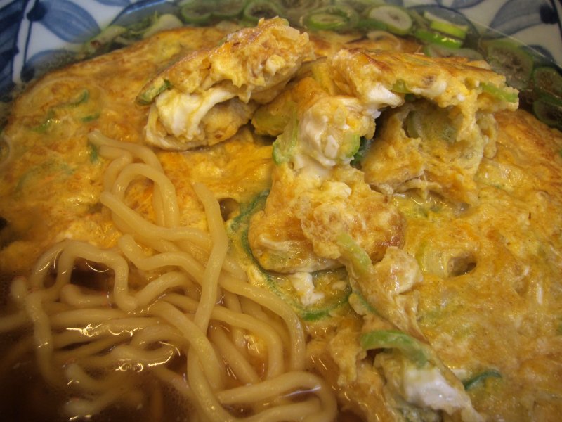 しばらくして運ばれたかに玉そばは、けっこう厚めの玉子焼きが載ったもの。しかも刻みネギがかなり入っていてうれしくなるね。 でも、こちらの丼は大きくて、スープが少なめに見えるのは残念。スープは昔ながらのラーメンぽくてシンプルで好きなんだけどね。 さて、メインのかに玉。刻みネギは多いけど、かには?って感じ。細かいのが入ってるのかもだけど、確認はできなかったな。ごちそうさまでした。 (26.1) |