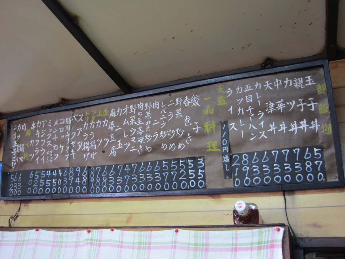 壁に張られた、手書きの品書きが懐かしいですね。 |