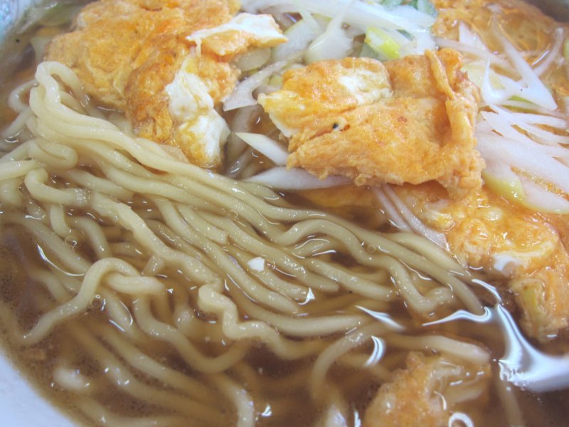 今日は萬来軒で天津麺\700と餃子\350をいただきました。 天津麺は大きなかに玉とネギが載っています。 まずはカニ玉から… でも、ネギは入ってるみたいだけど、筍も椎茸はもちろん、かには入ってないみたい… かなり残念だけど、お値段がお値段だからな? でも、かに玉の味はしましたが… |