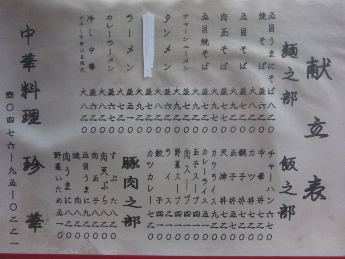 「珍華駐車場」の看板しかないので、暖簾がなければ、普通に走っていたら、ここが食堂とは気がつきません。しかも、いつも店の前を通ってもやってるん気配無かったから閉店したのかと思っていました。 |