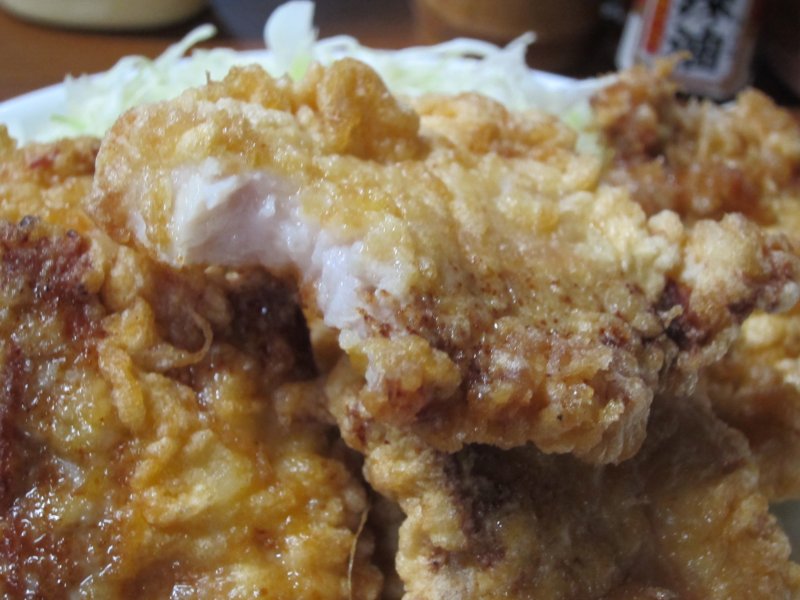 今日の珍華は肉天ぷら\820にライス\210を追加してね。 運ばれた肉天ぷらは、やや厚めの肉を天ぷらにしたもの。6枚盛られていてボリュームあります。 |