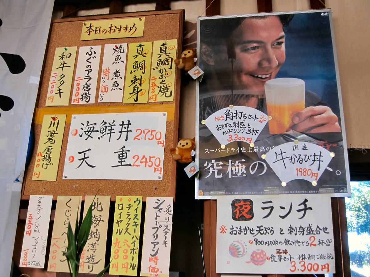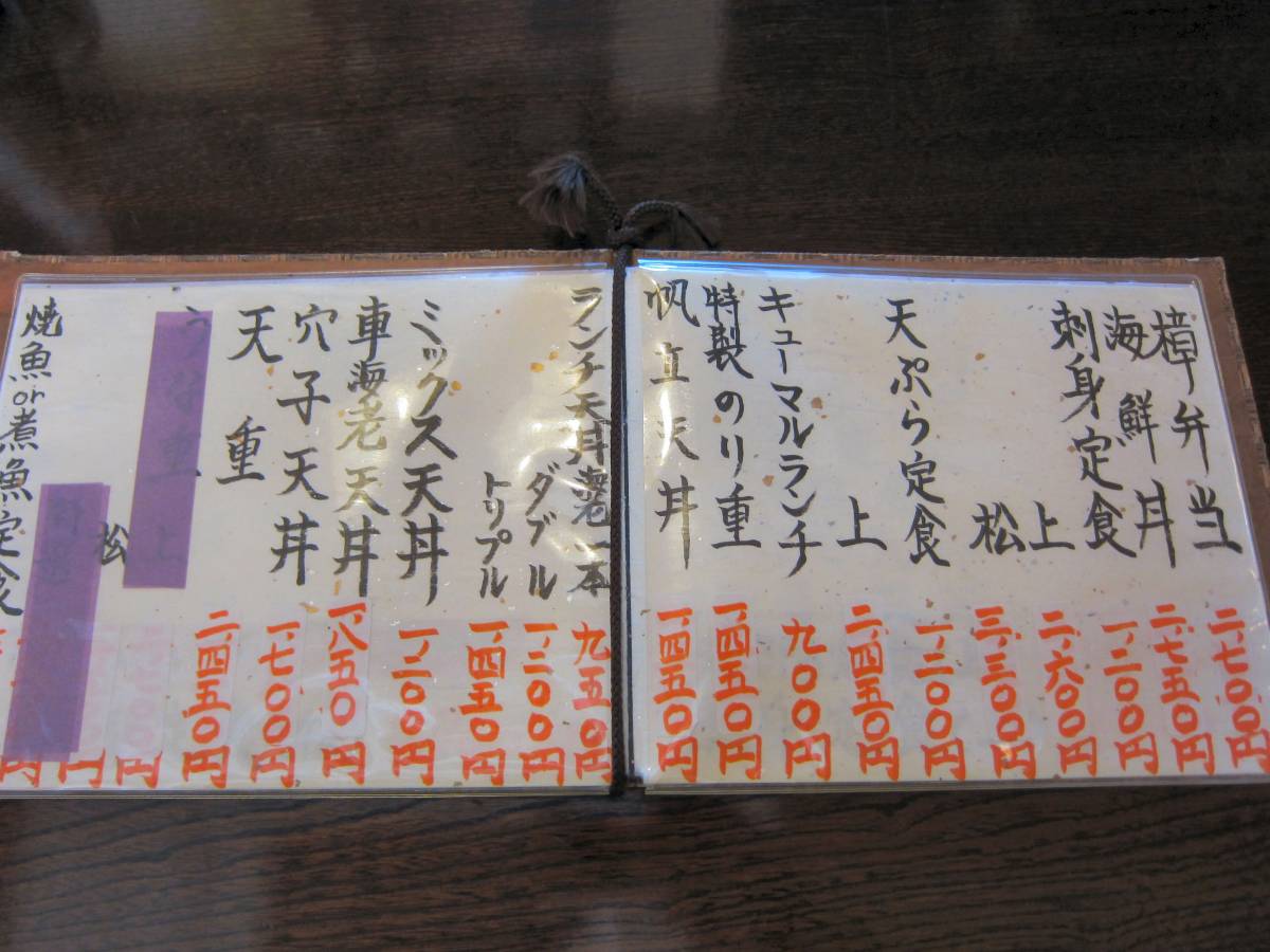 どうにかランチメニューには手が出るものがあったのでね。今回はミックス天丼\1200をいただくことにしました。 |