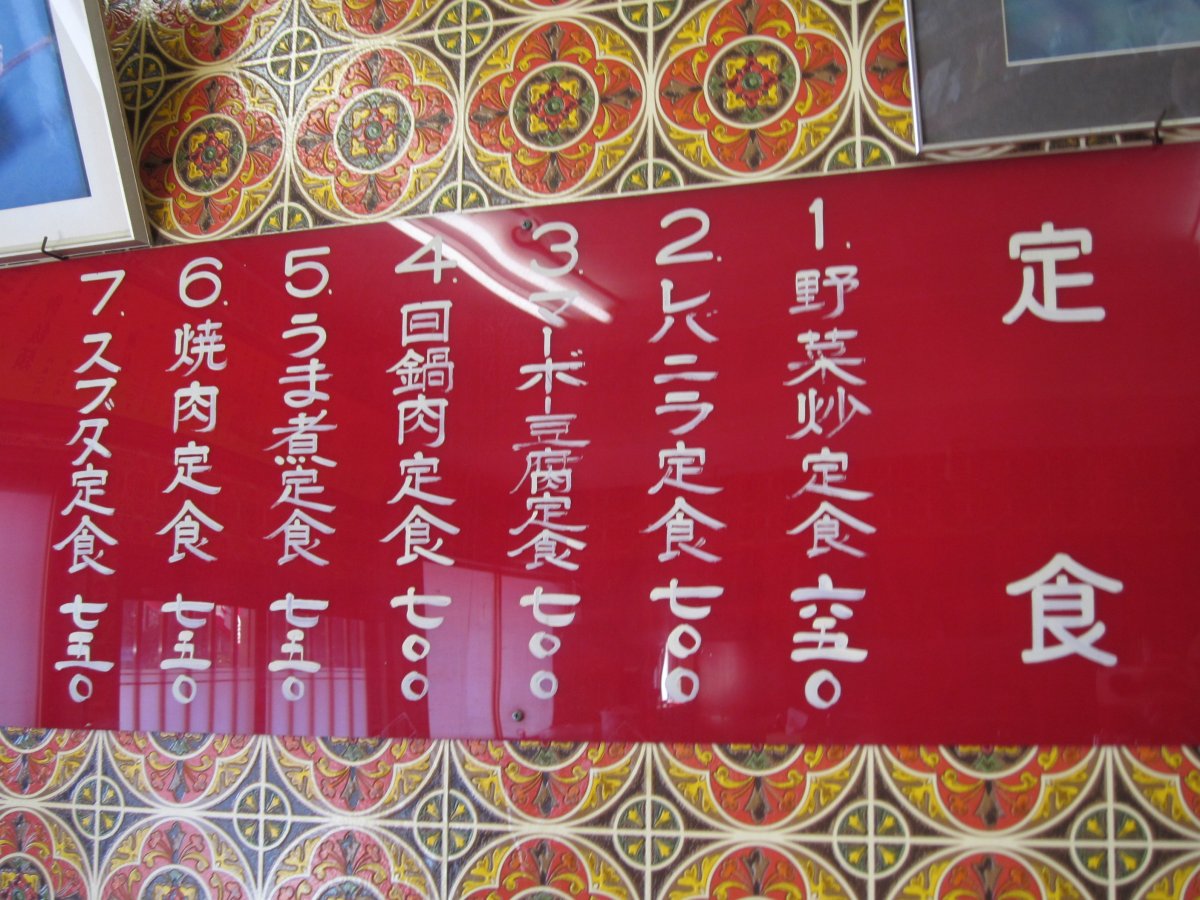 メニューを見ると、麺類だけでなく、一品料理、ご飯物も揃っています。それにしてもメニュー、どちらも安くて驚きます。で、今日は回鍋肉定食\700にしてみました。 |