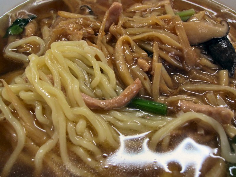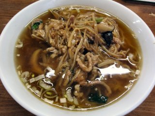 今日の桃李は肉ソバ\750をいただきました。 運ばれた肉そばは、他の店の肉そばとはまた違ったもの。豚肉と筍の細切りに椎茸を炒めたものを載せたラーメンでした。少しとろみもついてるかな。豚肉の柔らかさと筍のシャキッとした歯応えがいいですね。ただ、麺が少し柔めかな?次は少し堅めにしてもらおうかな。ごちそうさまでした。 (26.2) |