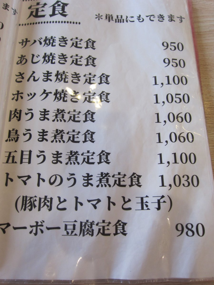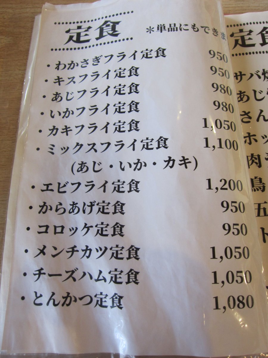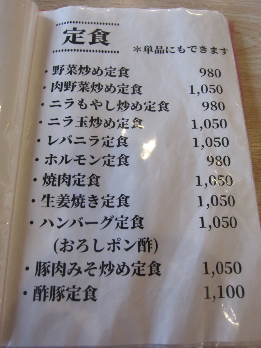 さて、メニュー見ると、定食メインでえらくたくさんの品が並んでいて、迷ってしまいます。とはいえ、初めての店だから、定番の生姜焼き定食\1050をいただくことにしました。 |