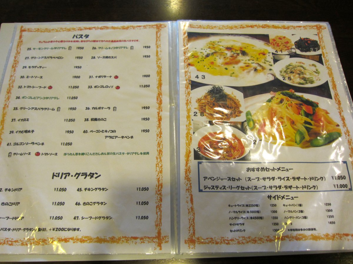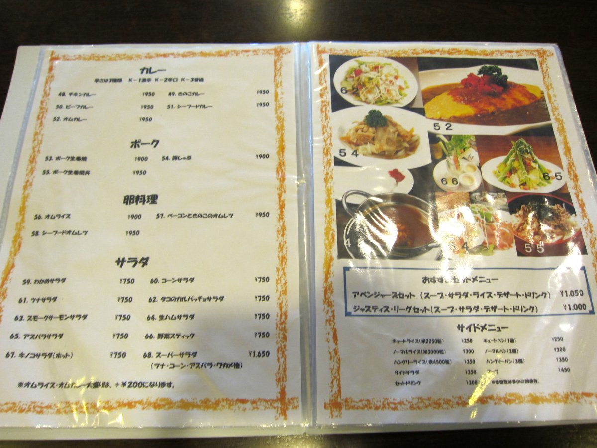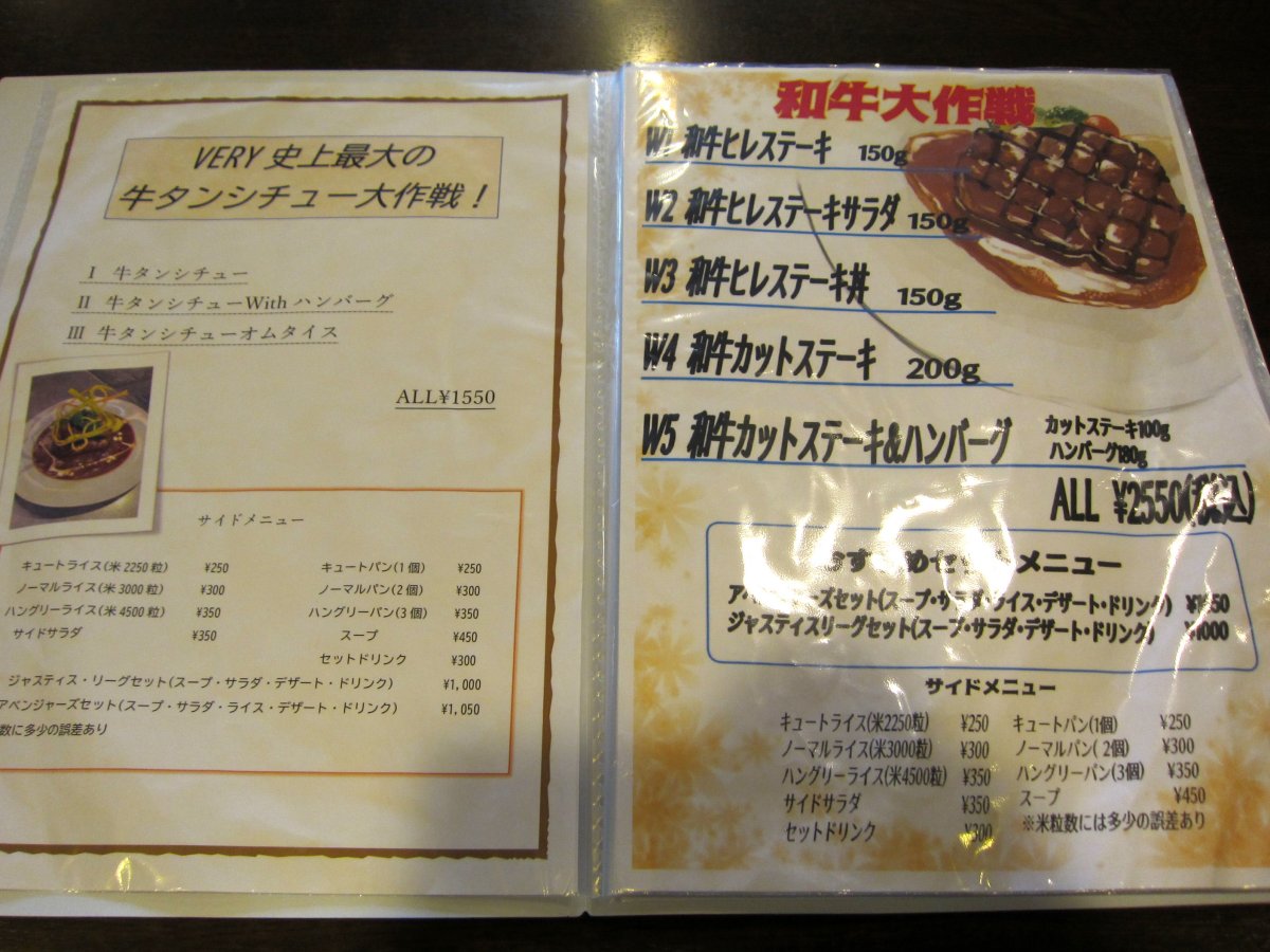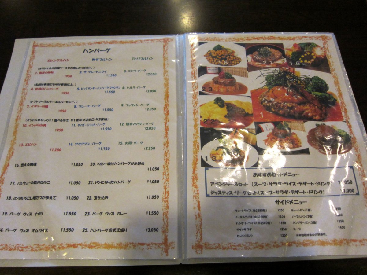メニューを見ると ハンバーグが売りとは聞いていましたが、ステーキやパスタ、カレーなども揃っています。 |