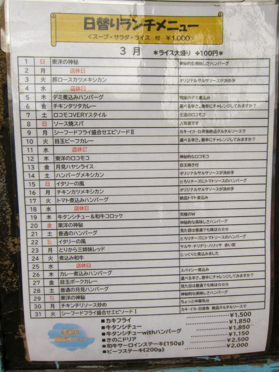 日替わりランチは1ヶ月分予告されているので、次に何を食べようかと予定しやすいですね。 |