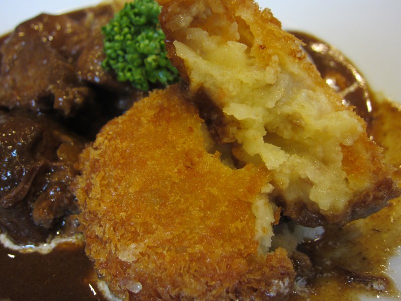 さて、お値段考えるとかなり具だくさんの牛タン。ボリュームたっぷりですね。そしてコロッケまで添えられていると、割安感ありますね。 |
