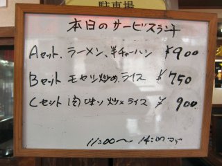 今日は長来で昼めしをね。何回も訪れているのに今日、初めて気がついたのは、サービスセットがあったのね。ということで、今日はCセットの肉味噌炒めセット\900をいただくことにしました。