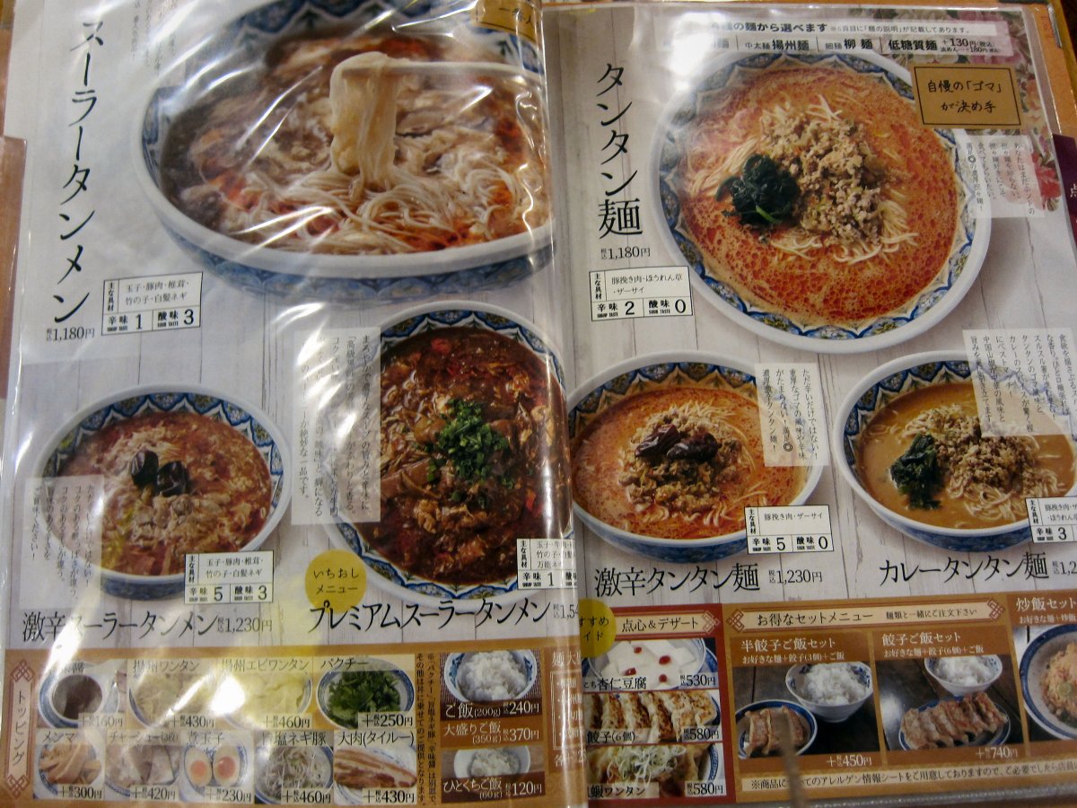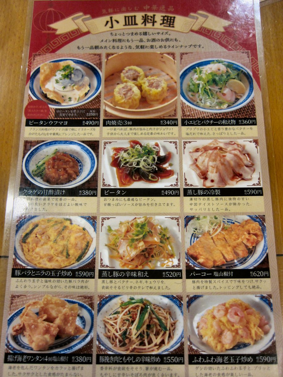 メニュー見ると、麺メインでどれもやや高め。何を食べようかと思ったけど、マイブームの天津麺に近い、豚玉ラーメン\1140をね。 |
