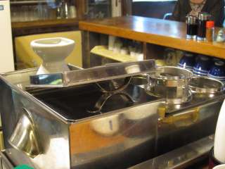 カウンターの中ではお姉さんが升で量りながら燗付けをしています。これがさらに雰囲気を盛り上げているんですね。 |