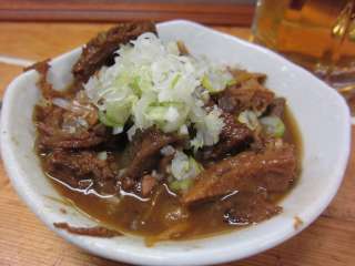 肴は牛もつ煮込み¥480からね。様々な部位が入っています。しかもよく煮込まれていて、柔らかいだけでなく、味も染みていてビールに合いますね。 |