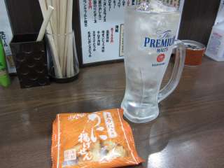 まずは生ビール¥400で外呑みのありがたさを実感!これは家じゃ味わえないよね。おまけのつまみサービス相変わらず! |