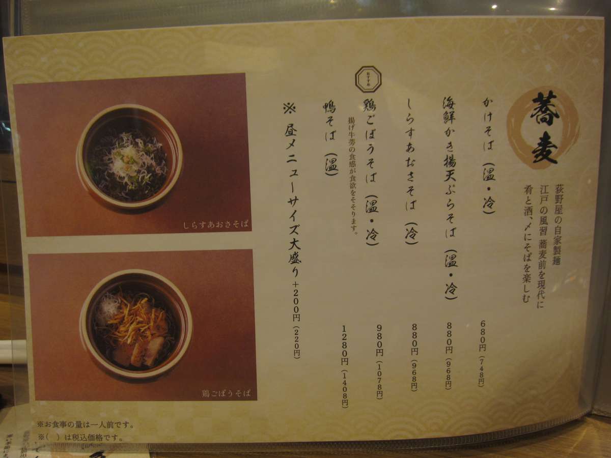 そう、あの、峠の釜めしのおぎのやが神田に店出したとは聞いてたんだけど、ガード下だったのね。メニュー見ると、私の基準ではややお高めなんだけどね… つい初物に弱くてね。 |
