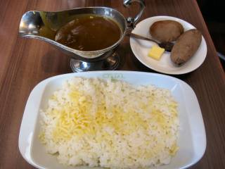 当然のことながら、ルーはご飯の上にね。 ルーはお子様、甘口、中辛、辛口と選べるので、中辛でお願いしましたが、そんなに辛くはなく、甘みも感じるほど。 ご飯がけっこうボリュームあり、ご飯の温かさでチーズもとろけて美味しい!かなりお腹いっぱいになりました。ごちそうさまでした。 (24.4) |