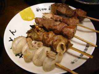新橋駅の烏森口から浜松町方面に少し歩いたガード下にある居酒屋です。新橋では数軒の店を構えるやきとんの店で、いくつかの支店もあるそうです。店はお父さんの街、新橋そのもので、仕事帰りのお父さん達で一杯です。でも、若い女性も少なからずいます。 |