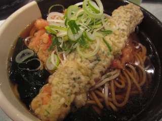 小腹が減ったので立ち寄りました。今回は本しめじ&舞茸天ぷらそば\390です。かけそばの上に大きめの本しめじと舞茸の天ぷらが載ったものですが、饂飩粉が多くて肝心のキノコが少ない、もっさりとした天ぷらです。まあ、お腹の足しにはなりますが、やや期待はずれでした。 (13.1) |