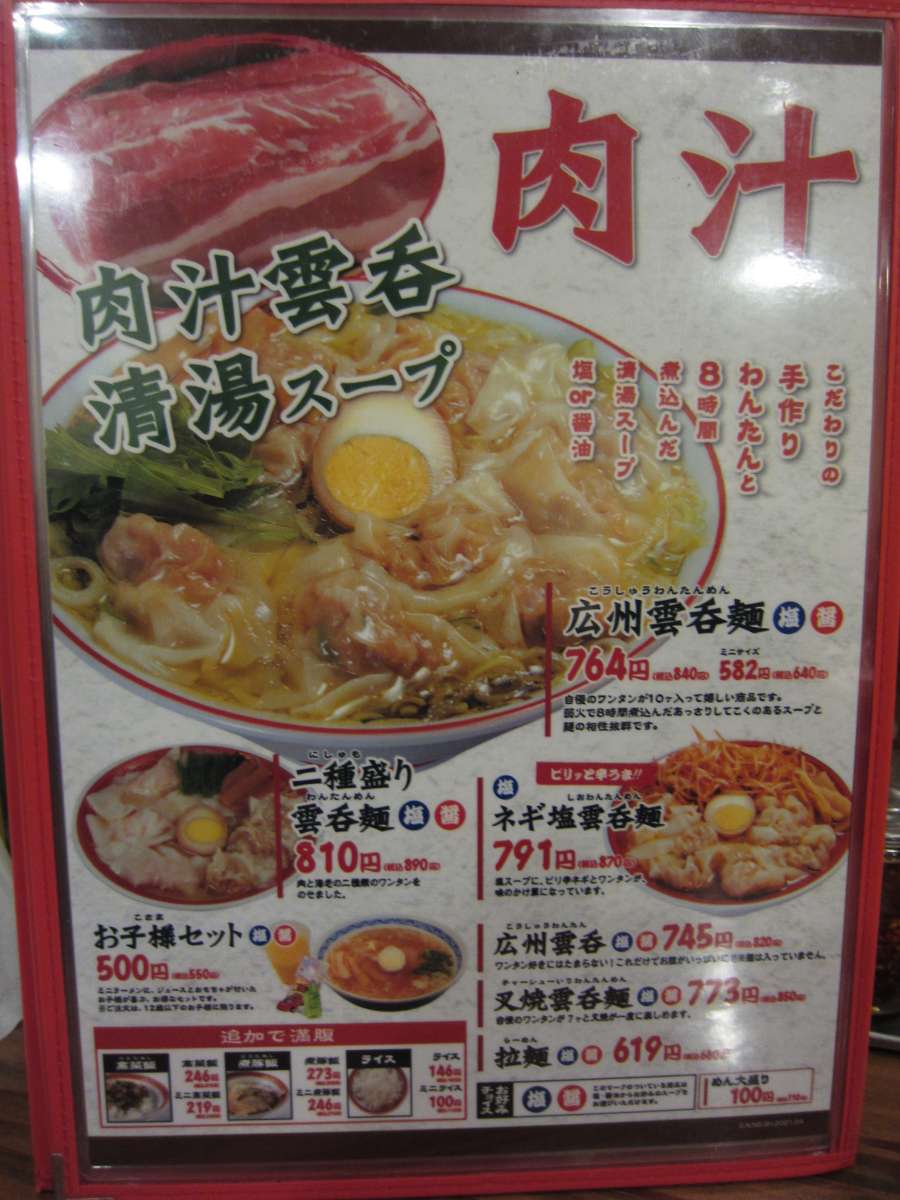 新宿駅西口にある店を訪れましたが、ワンタン麺のチェーンのようですね。昼時を少し過ぎていたのですが、常に満席状態で人気のほどが伺えます。 |