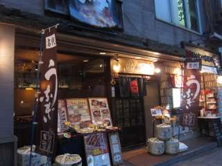 訪れた日は通常1串\300のレバー串焼きが\88ということなので2本ね。そしてつくねだんご\200と皮\300を注文します。焼き鳥1本としてはけっこう強気なお値段です。 でも、運ばれた焼き鳥を見てやや納得。かなり大きな串なんですね。レバーなんか、普通ならこの半分の切り身でしょうからね。かなり満足できる大きさです。でも、焼き鳥4串で\1000はけっこう懐に痛いな〜 レバーのねっとりとした歯応えがいいですね。ビールよりも酒の方がいいかな。そしてつくね。でも、これは単なる肉団子かな。軟骨入れてコリコリ感が欲しいよね。皮焼きは皮特有のグニュッという食感がたまりません。焼きすぎず、生過ぎずで頃合いの焼き加減はさすがですね。 鮒忠というと、安い居酒屋っていうイメージだったんですが、思ったよりも安くはなかったですね。もうちょっと安ければ通えるんですがね。ごちそうさまでした。 (16.10) |