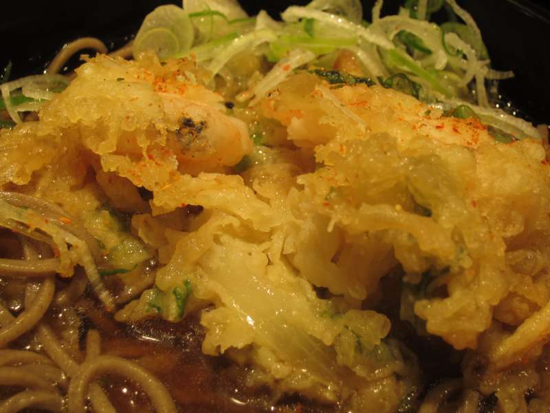今年の干支そばは、ブラックタイガーと小松菜のかき揚げだそうです。「タイガー」だから「寅」なのね! やっぱりここのかき揚げ、でかいのよ〜 食べても食べてもなかなか減らなくてね。大きめの海老が3尾入っていて、カリッとした歯応えもいいね。ごちそうさまでした。 (22.1) |