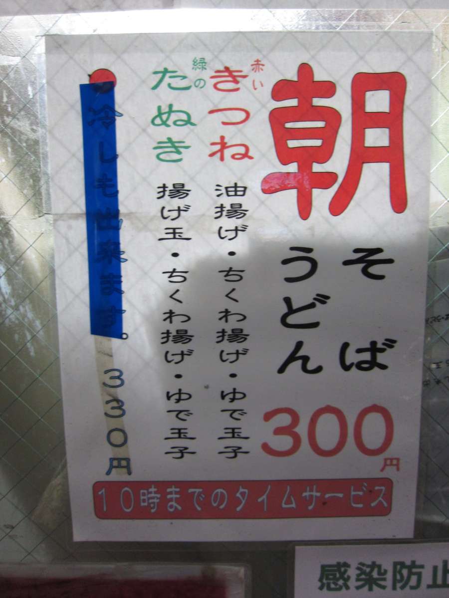 変わってるのは、チェーン系ではないのに、割安な朝そばが用意されていること。 |