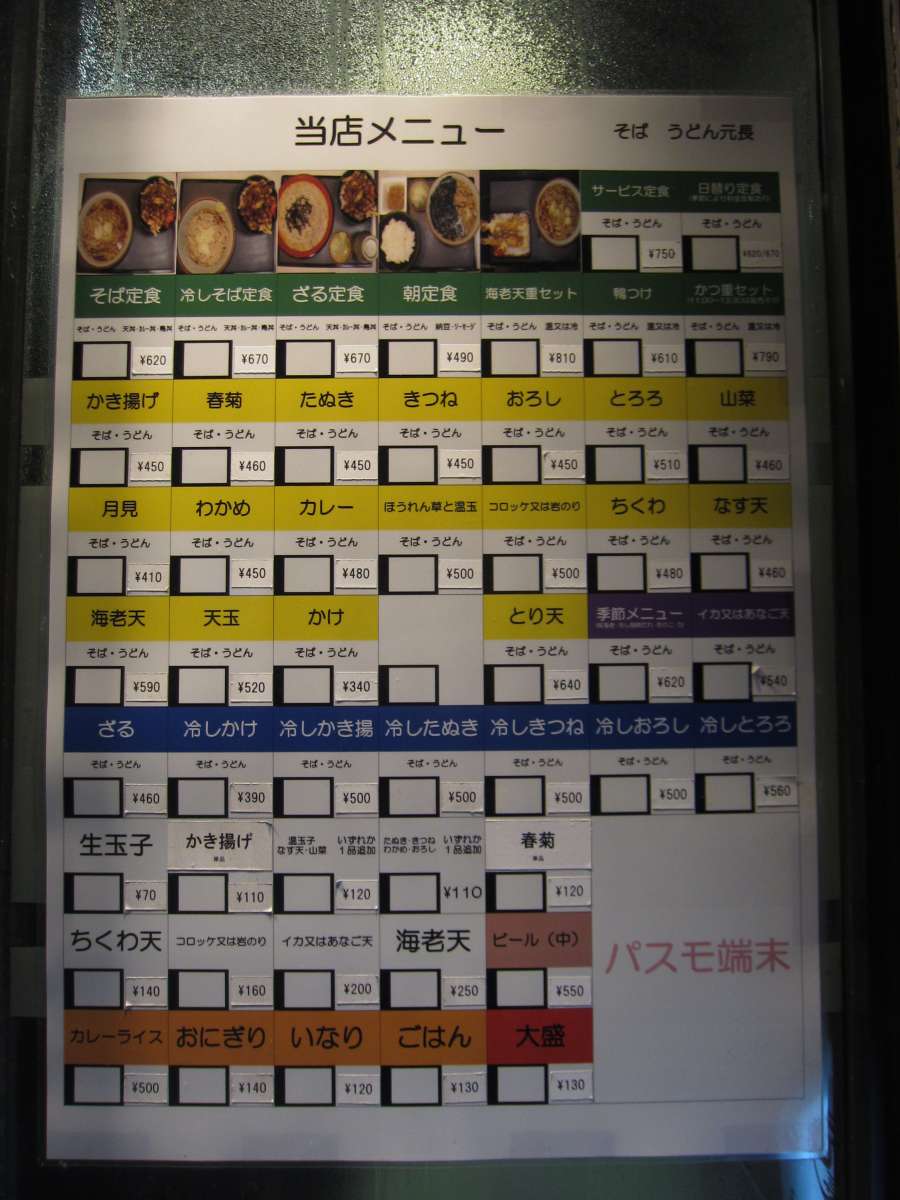 今日の元長は冷やしとろろそば\560にたぬき\110を追加してね。とろろにたぬきのしゃきしゃき感が加わるのが病み付きなのよ。 ところで、今日気がついたんだけど、いつの間にか値上がりしてたのね(>o<) |