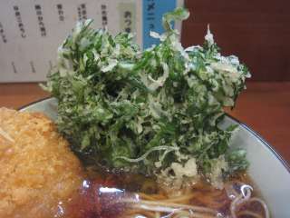 今日の元長は最近定番となった、朝定食\450のソーセージそばとなめたけ丼のセットね。そして、かき揚げ\100を追加して、冷やし+\50にしてもらいました。 |