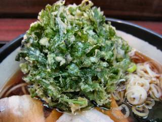 天ぷらはどちらも揚げ置きで、カラッと感がないのが残念。 春菊天は衣が厚めでどうもうどん粉の主張が強め。多少春菊の苦みが味わえたかな。 |