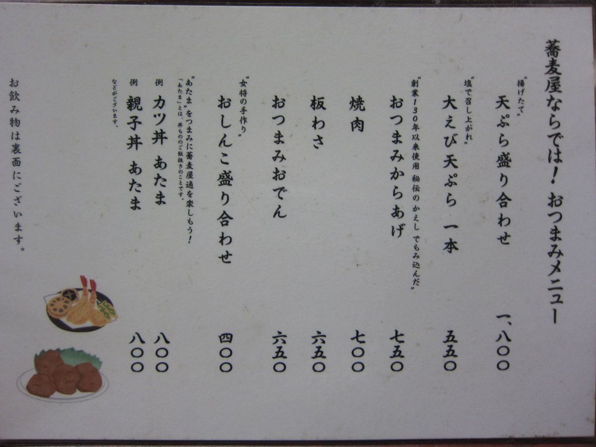 元々は蕎麦屋だから、蕎麦類のメニューも充実。ご飯もの、定食だけでなく、昔から蕎麦屋は呑み屋だったから、肴も充実してますね。 |