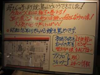 そして肴は焼き鳥3本。つくねと皮、そしてささみの梅肉載せ。やや小さめの焼き鳥ですが、それぞれの部位の旨さをしっかりと味わうことができるものでした。ごちそうさまでした。 (14.11) |