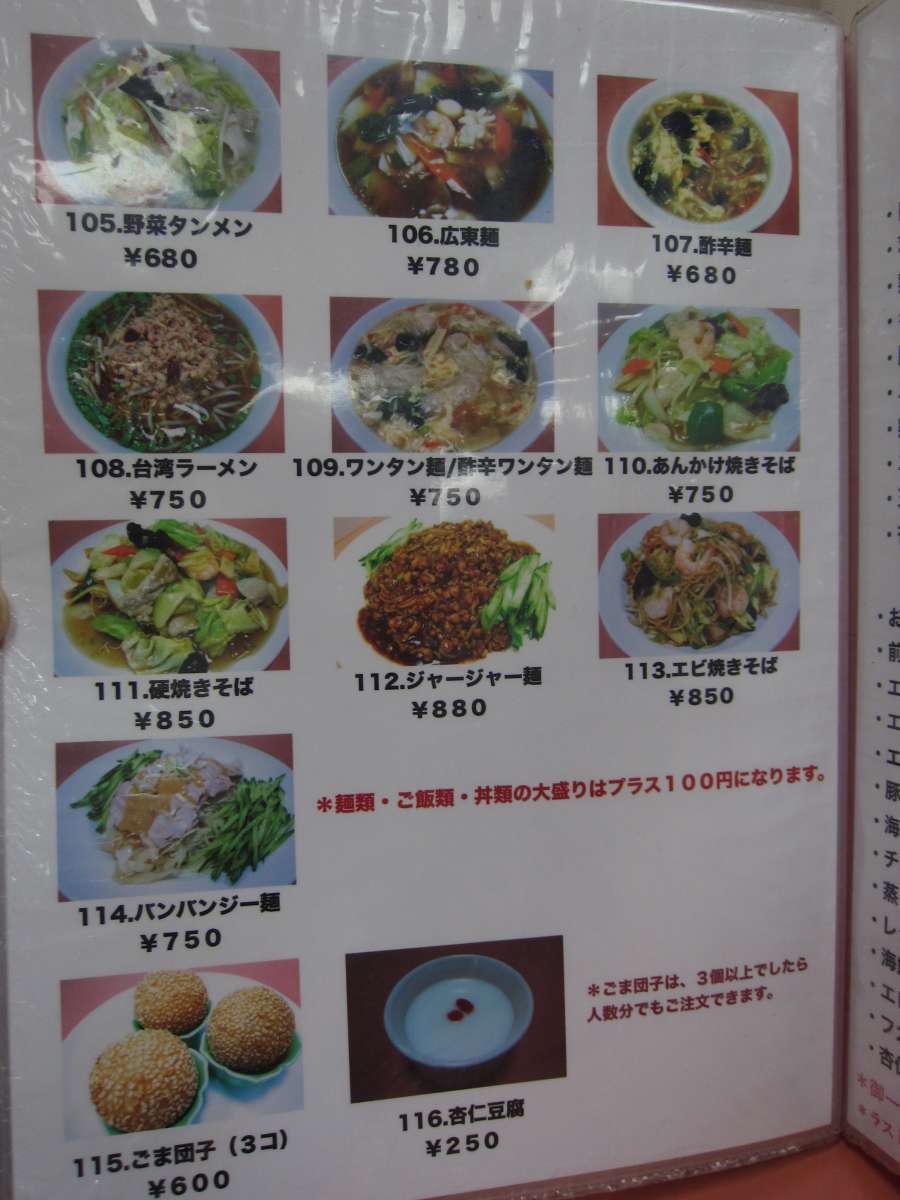 メニューを見ると、中華料理店らしく様々なメニューが並んでいます。何を食べようかと迷ってしまいます。 |