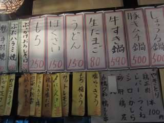 この店来るとホントに驚くのが、店内中に張り巡らされた、短冊メニュー!これ、ホントに全て作れるの?ということと、全てのメニュー食べた人いるのかなって、こと。なんか、テレビのバラエティーで、人気順を当てるとかって番組チラッと見た記憶あるけど、そういうので紹介してほしいよね。 |