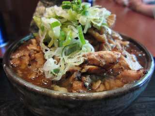けっこう早めに運ばれたつけ麺。やはり400gの麺はボリュームあります。つけ汁には海苔と刻みネギ、ほぐしチャーシューが沈んでいます。甘みと酸味が同居したもの。経堂時代の稲荷のつけ麺を食べた時は強烈なインパクトを受けたのですが、経験が増えたからか、それともラーメン屋のレベルが上がったからなのか、インパクト薄いかな。特に麺量が多いので、最後になるとちょっと飽きてきてしまうのが残念なところです。そして量は多いけど、内容からするとお値段が高めなのが最大の欠点かな。 (11.9) |
