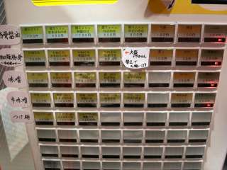 久しぶりに寄ってみました。すると新しい期間限定メニュー、ネギつけ麺\850がありました。ついそちらに気をとられてしまいましたが、券売機を見ると1ヶ月前と全然メニュー構成が変わっているじゃありませんか!味噌系がなくなっているんですよ。う〜ん、味噌も食べておけばよかった!でも、悔やんでも始まりません。そこで期間限定メニューのボタンをつい押してしまいました。 |