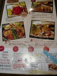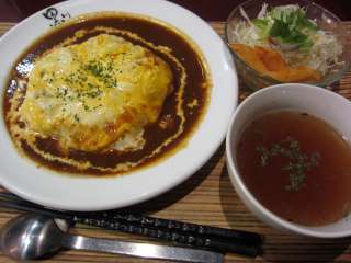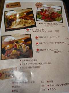メニューを見ると若い女性が好みそうな洋食や創作系のメニューが並んでいます。そんな中でチョイスしたのが、好物のふわふわ卵かけチキンライス(オムライス)\980です。ソースはデミソースとトマトソースから選べるそうなので、デミグラスソースでお願いしました。 |