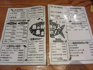 メニューは駅前店と同じようです。どれもそんなに高くなくて、飲兵衛には嬉しいですね。 |