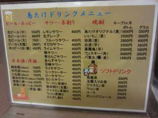 メインの焼き鳥はほぼ\200。ちょっとお高めですが、運ばれてきてびっくりです。焼き鳥以外にも揚げ物、煮物などいろいろなものがあり、何を食べようかと迷ってしまいます。今回は初めての店なので、いつものごとく煮込み\450に焼鳥\200、皮\200、とり肝(レバー)\200を注文しました。 |