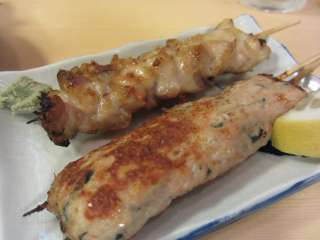 続いて売りの焼き鳥。今回は好物の鶏レバー\200とつくね\220です。レバーの半生といった感じのまったり感が何とも言えません。つくねはしそが練り込んであってさわやかな印象です。コリコリ感もたまりません。 |