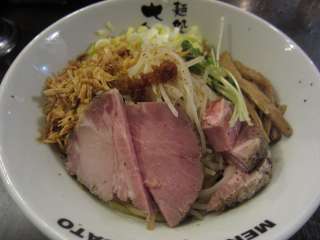 飲んだ帰りに〆の飯として寄りました。今日は汁麺よりもまぜめんの雰囲気だったので、限定?の味噌まぜそば¥850をいただきました。 |