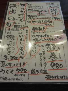 いつものそしがや温泉21に浸かった後、咽を潤したくなって、ほろ酔いセット\1500の看板に引かれて寄ってしまいました。 |