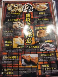 売り?のほろ酔いセットは飲み物2杯と小鉢、刺身、焼き物の組み合わせだそうです。どんなものが出てくるのか、楽しみです。こちらは最近よく見かける海鮮系居酒屋でしかも、コンロで自分で焼くタイプです。他にも刺身や焼き物など色々と揃っています。また、寄ってみたくなる撒き餌ですかね。 |