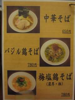 注文は入口にある券売機で食券を買う方式です。メインの鶏白湯にしようかと思ったのですが、軽くいきたかったので、期間限定という冷やし鶏そば\780をいただくことにしました。食券を渡す時に、普通か柚子かと聞かれたので、とりあえず柚子でお願いしました。 |