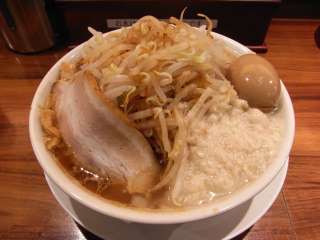 しばらくして運ばれたラーメンは野菜というより、もやしのてんこ盛り。さらに背脂がスープの上に直接載っています。そしてベーコンのような肉が1枚。 さっそくスープを啜ると、二郎系としては薄めって感じです。コクがあまり感じられません。背脂は冷めていて、寸胴のスープに浮かんでいたものとは違うようですね。第一、真っ白できれい過ぎ… もやしはシャキシャキで美味しいです。麺は普通の麺と比べると太麺ですが、二郎系としては細めかも。ゴワゴワ感なしですね。そして珍しくメンマが載っています。チャーシューは薄めで、二郎系としては物足りないですね。 二郎を期待しているとちょっと物足りなさを感じてしまいます。スタミナ丼などもあるのでガッツリと食べたい時に寄る店なのかな?しっかりとお腹を満たすにはいい店だとは思います。 (11.5) ※こちらの店も閉店してしまいました。 (12.12) |