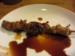 もも肉はもも肉が1枚焼かれて出てくるのかと思ったのですが、もも肉の半分くらいのものが串刺しにされて焼かれていました。皮はパリッと。そして肉は柔らかくジューシーで美味しいんですが、内容からするとお値段は高めですね。 |